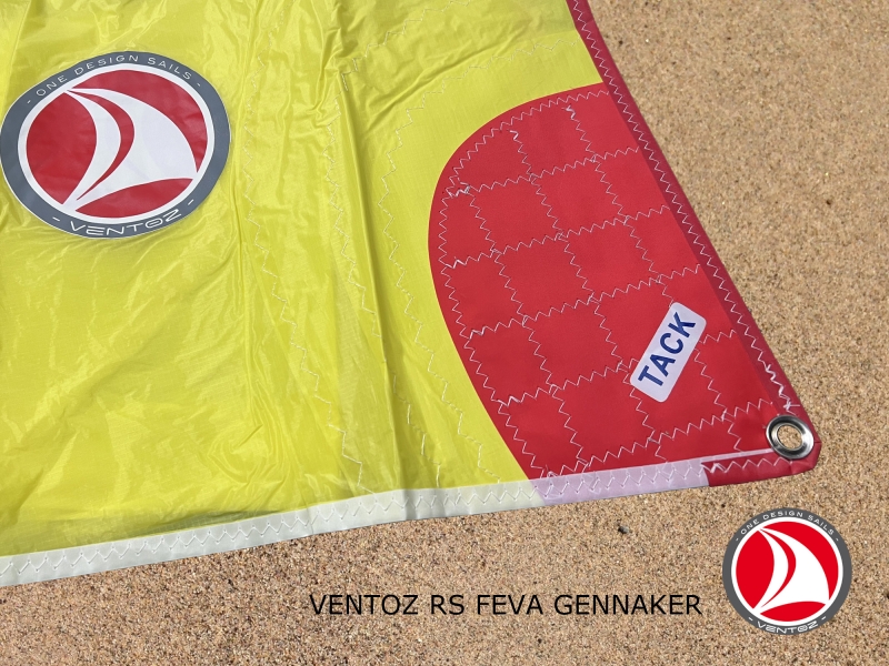 Dit is de Ventoz RS Feva gennaker. Deze gennaker is geel.